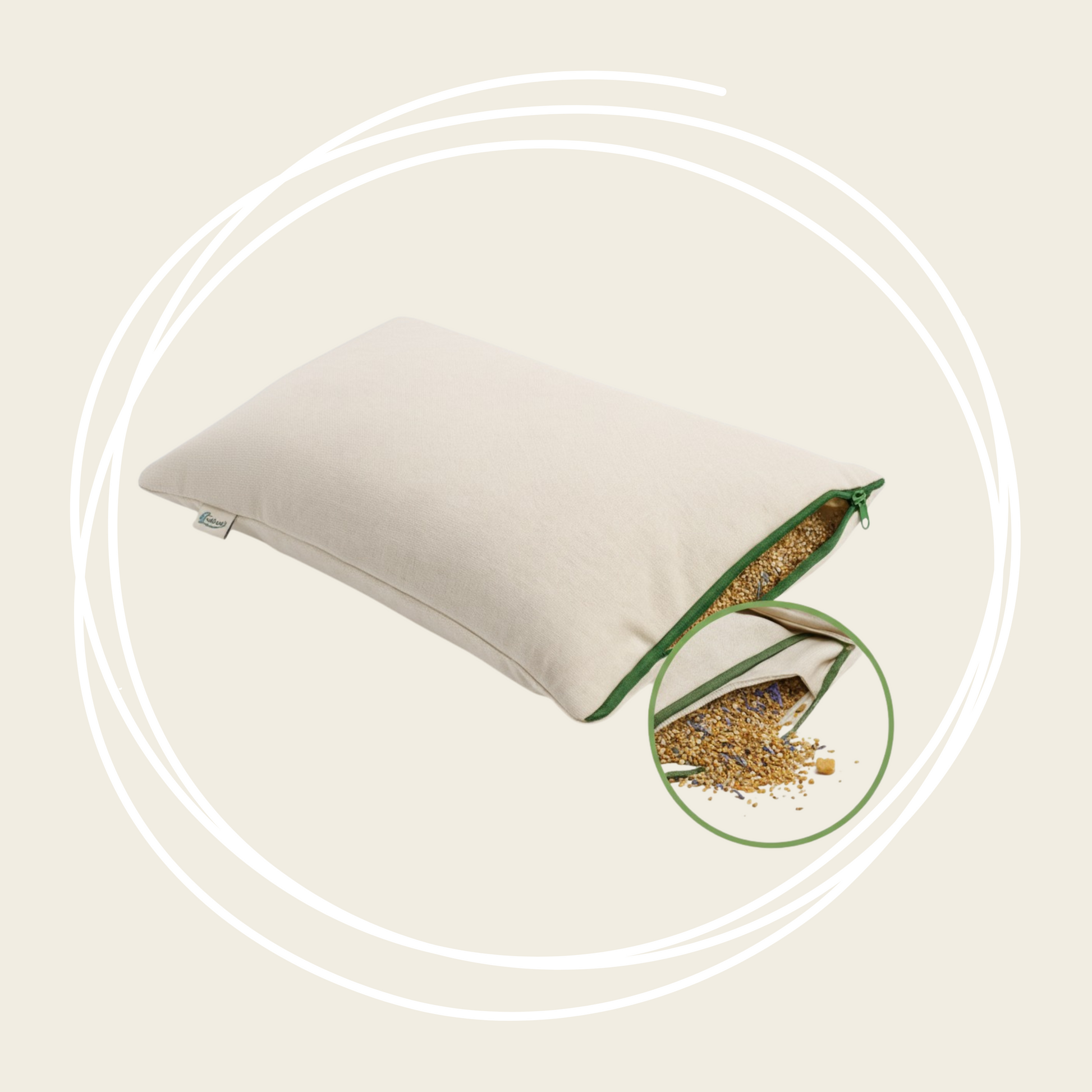 Gebruik altijd met een kussensloop. Laat het kussen regelmatig luchten en ververs de kruidenmix na enkele maanden voor een frisse geurbeleving. Niet geschikt voor machinewas; alleen de sloop kan gewassen worden.